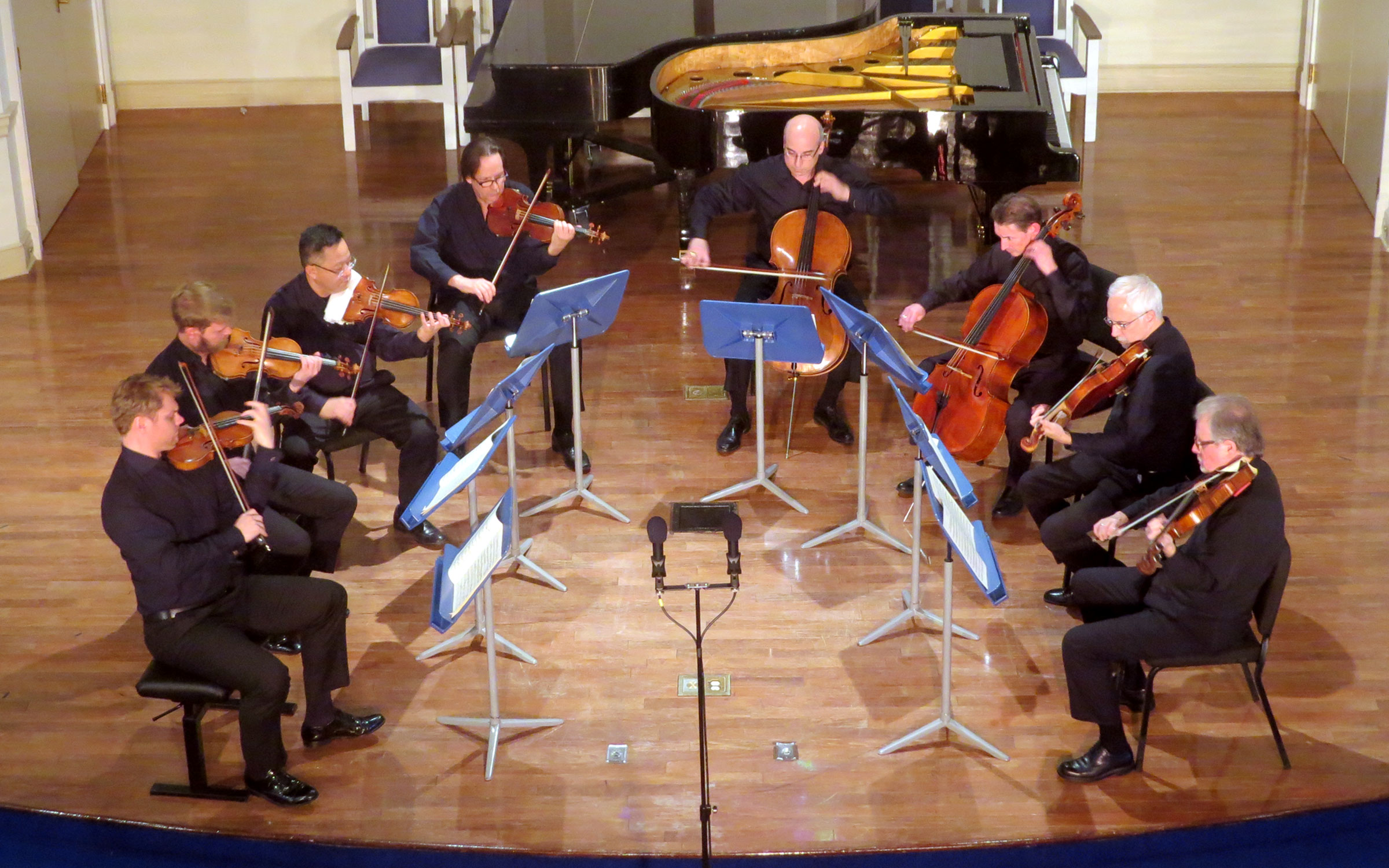 The concert concluded with a vibrant, engaging performance of Felix Mendelssohn’s Octet in E-flat major, Op. 20, written when the composer was 16 years old — a musically mature composition for someone that age. The performers were violinists David Coucheron, Justin Bruns, Jun-Ching Lin and Mark Huggins; violists Reid Harris and Paul Murphy; and cellists Christopher Rex and Daniel Laufer. All are prominent members of the Atlanta Symphpny Orchestra with the exception of visiting guest violinist Huggins, who is associate concertmaster of the Pittsburgh Symphony Orchestra.