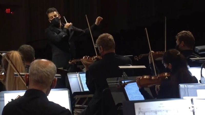 Gone are the Plexiglas shields that were so obvious in previous streamed performances. Musicians continued to distance, even if a little closer, and players strings, harp, keyboard, timpani and percussion continued to wear masks. But it is a clear sign of coming out of from under the most stringent pandemic safety precautions.